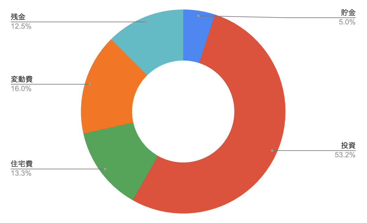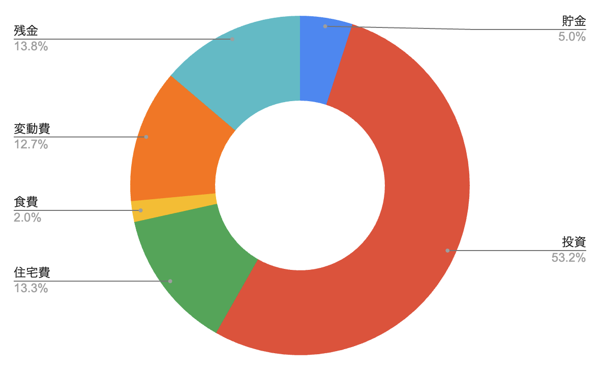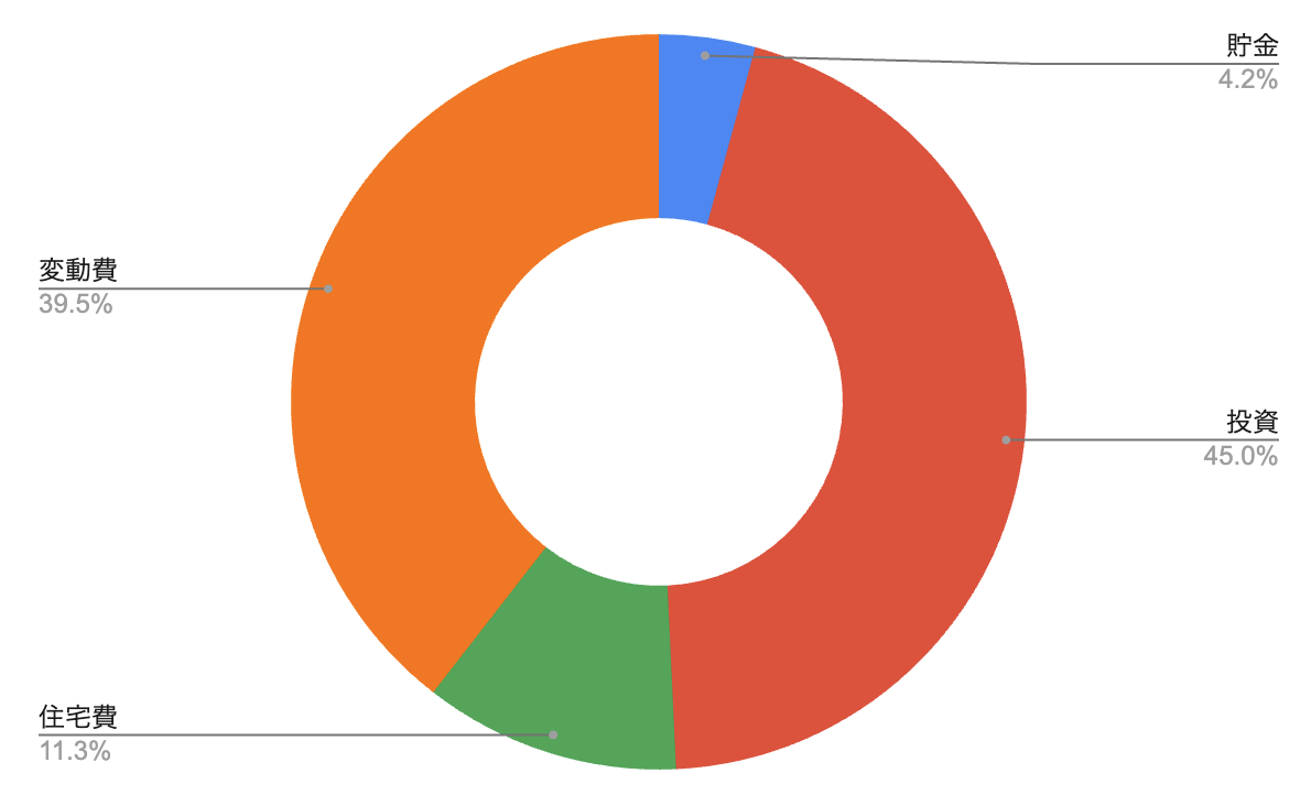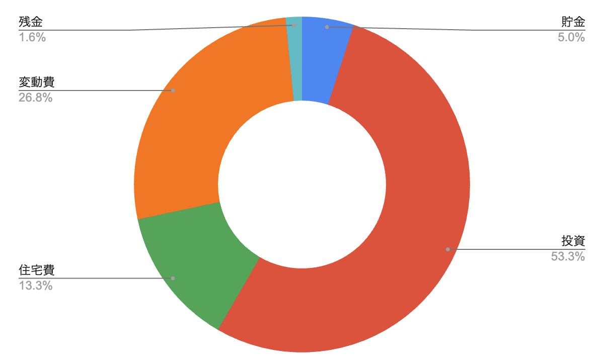 貯蓄率は、(貯金 + 投資 + 残金) ÷ 収入 × 100で計算してます。